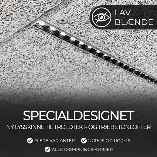 Specialdesignet LED belysning til Troldtekt- og træbetonlofter