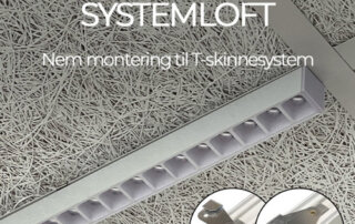 NYHED til systemlofter med T-skinne system UGR LED lysskinne udviklet specifikt til nem montering i systemlofter med T-skinnesystem. Nem og hurtig installation og et professionelt udtryk uden behov for indbygning. Med den specialdesignet reflektor leverer skinnerne et behageligt, blændfrit lys med lav UGR – ideelt til kontorer og andre arbejdsmiljøer, hvor et godt lys uden [...]