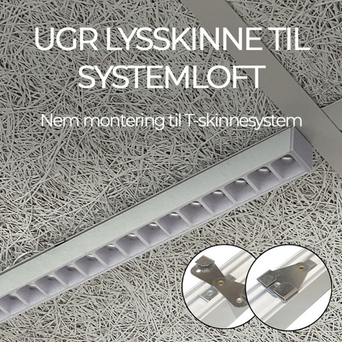UGR LED lysskinne udviklet specifikt til nem montering i systemlofter med